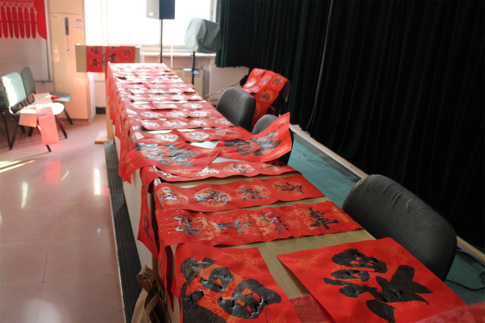 今年當(dāng)然也不能例外!2月2 日下午15 點至 17 點30分,市書法家協(xié)會的多位優(yōu)秀書法家準(zhǔn)時來到五樓會議室為本院職工們免費書寫春聯(lián),大伙兒熱情很高, 現(xiàn)場氣氛歡快,不一會兒各色字體,不同內(nèi)容的大紅春聯(lián)就鋪滿了各個角落。